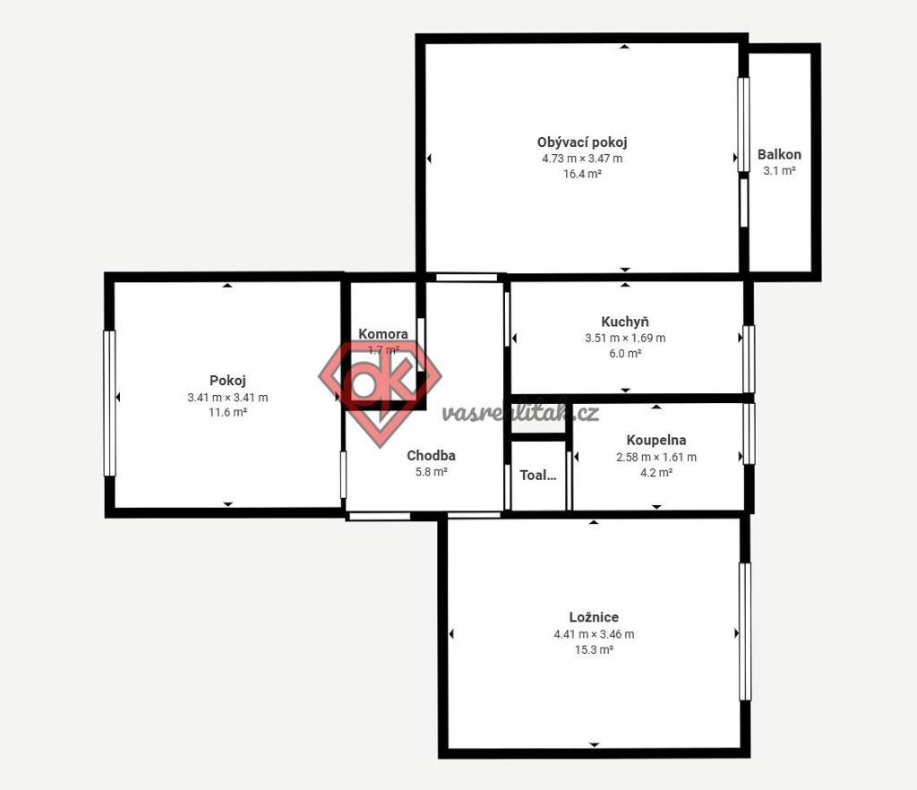 – k bytu náleží také sklep (5,06 m²)