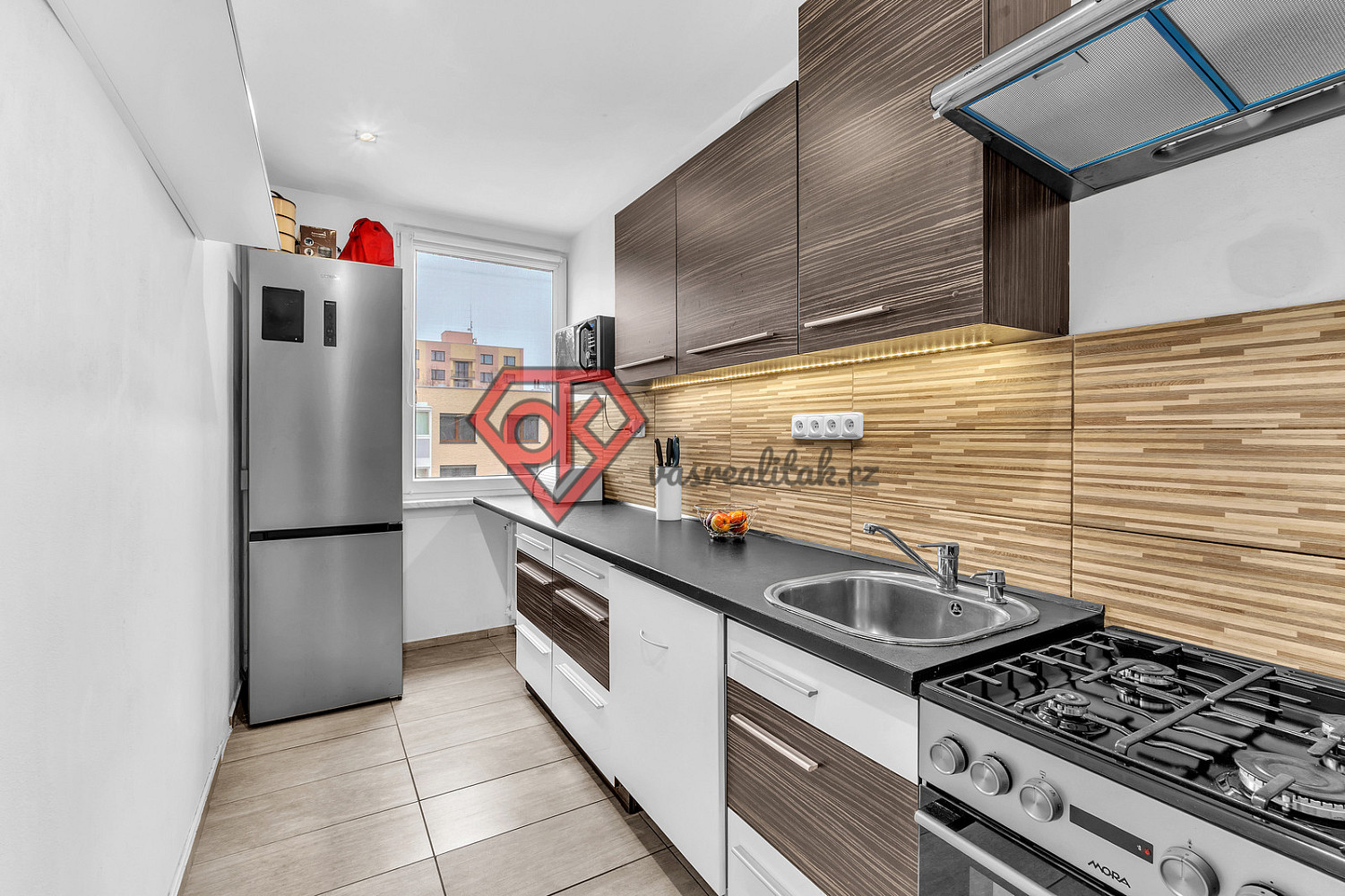 Nachází se ve 4. podlaží čtyřpatrového panelového domu na oblíbeném „horním“ sídlišti na ulici Chodská. Jeho dispozice je 3+1, má podlahovou plochu 68 m² a prošel velmi povedenou rekonstrukcí.